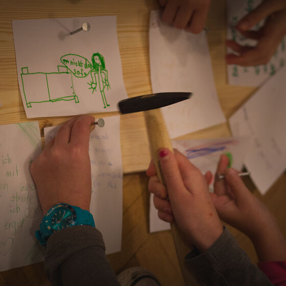 Im Vormittagsprogramm, das durch die Kindergottesdienstteams der Kirchengemeinden des Kirchenkreises gestaltet wurde, nahmen die Kinder diesen Impuls mit auf und hatten die Möglichkeit ihre ganz eigenen Thesen zu ihren Rechten als Kinder zu formulieren und ähnlich wie Martin Luther auf Holzbrettern festzunageln. Die „Thesen“ reichten vom Recht auf spielen bis zum Recht Zeit mit den Eltern zu verbringen. Nach dem Mittagessen konnten sich die Kinder frei auf dem Kirchberg bewegen und in verschiedenen Workshops, die von Teamern aus dem gesamten Kirchenkreis gestaltet wurden, kreativ werden. Auf die Frage was ihnen am besten gefallen habe, gab es ganz unterschiedliche Antworten. Für die einen war es die Gestaltung ihres eigenen Kräutergartens, das Ziehen einer eigenen Kerze, die Gestaltung einer Postkarte für die Oma, für die anderen ein Foto mit dem lebensgroßen Playmobil-Luther oder suche nach Süßigkeiten im Heu.