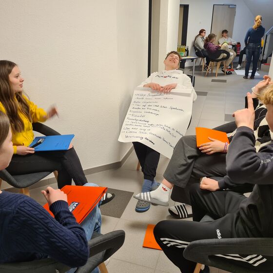 Die sechs Tage vergingen wie im Flug. Sie waren sowohl mit theoretischen Inhalten gefüllt als auch mit praktischen Übungen. So wurde zum Beispiel der*die perfekte Jugendgruppenleiter*in gemalt, an Stationen lernten die Teilnehmenden verschiedene Leitungsstile kennen, rechtliche Grundlagen wurden als Quiz behandelt und es wurde über Mobbing und gewaltfreie Kommunikation diskutiert. Weitere Schwerpunkte der Juleica-Schulung waren Spieltheorie und Spielpraxis und Projektplanung. Hierbei konnten die Teilnehmer*innen ihr gelerntes Wissen aus der Theorie umsetzen und aktiv Andachten gestalten, Spiele anleiten und ein Abendprogramm planen und durchführen. Obwohl die Schulung intensiv und anstrengend war, kam der Spaß nicht zu kurz. Tagsüber erzählten wir uns schlechte Flirtsprüche beim Mittagessen und spielten vor jede*r Einheit ein kurzes Warming-Up (z.B. Kapitän & Kapitänin, Zublinzeln, Detektiv und Mörder, Känguru). In den Abendprogrammen flitzten wir im Chaosspiel durchs Haus, tanzten gemeinsam zu Macarena und sangen zu einem Wort eine Passage eines Liedes.
