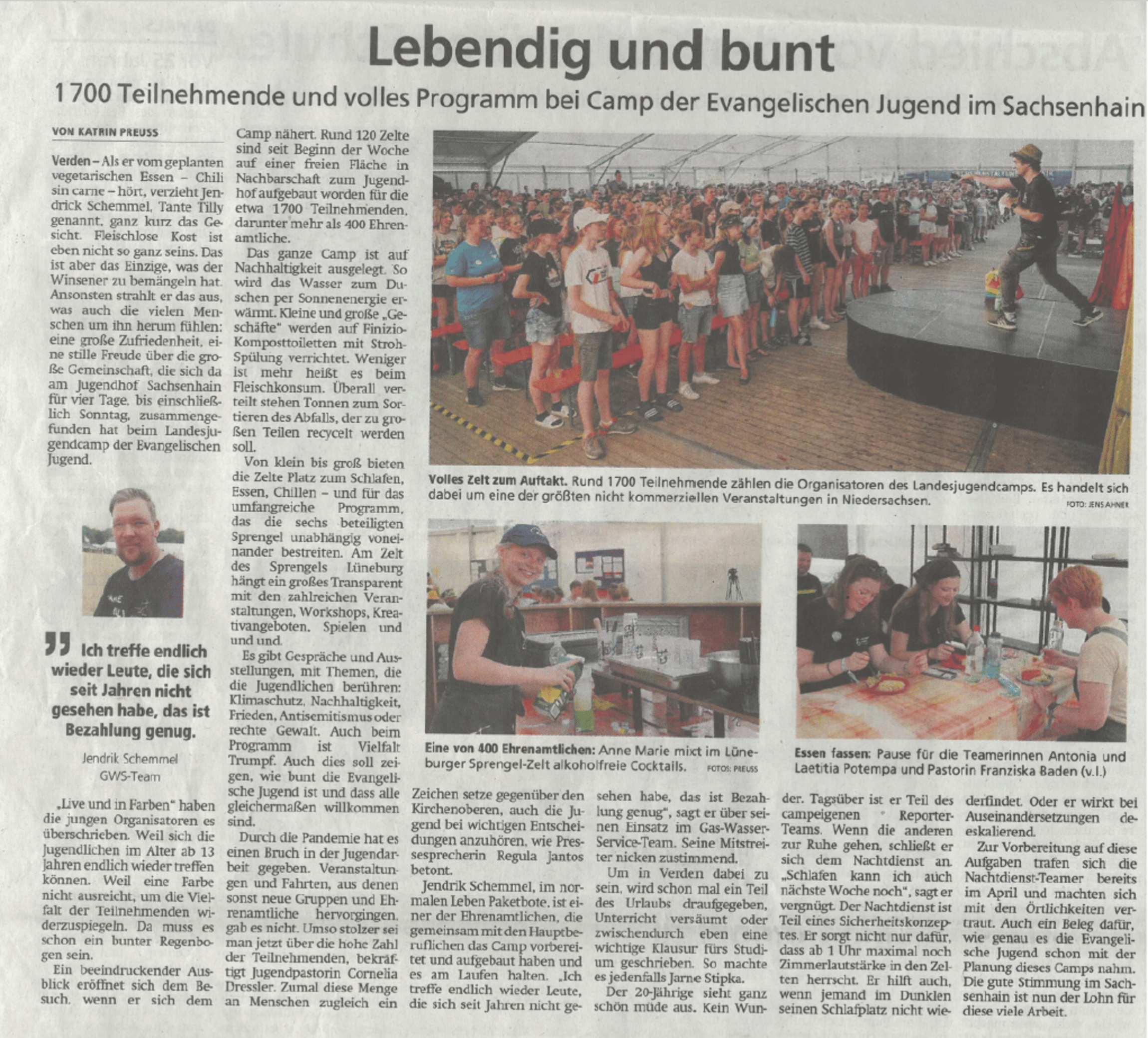 Wir haben das Landesjugendcamp mit ganz unterschiedlichen Erfahrungen erlebt. Für mich (Tetje) war es das erste Mal. Ich (Paula) war schon ein paar mal als Besucherin da. Dieses Jahr nahm ich (Paula) einen Tag später am Camp teil. Das war zum Glück gar kein Problem. Ich habe mich sofort willkommen geheißen gefühlt und es war alles sehr entspannt.