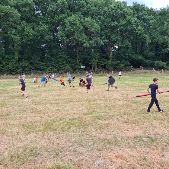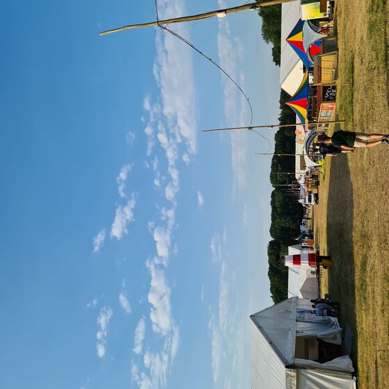 Ich (Tetje) habe lange an einem „Schwedenstuhl“ gebaut. Der Stuhl kam nach der Fertigstellung auch direkt zum Einsatz. So konnte ich mich in den Pausen vom Jugger spielen kurz bequem erholen. Generell gab es so viele Angebote gleichzeitig, das aus allen Altersklassen immer jemand etwas gefunden hat. Wenn wir keine Lust auf Action hatten, waren wir spazieren, im Ruhezelt oder haben uns einfach entspannt mit Menschen unterhalten. Mittags gab es wieder Essen in den Sprengeln. Übrigens: Wer neben den Hauptmahlzeiten Hunger hat, findet auf dem ganzen Gelände kleine bis größere Snacks. Bei uns im Sprengel gab es Joghurt mit Früchten und Toppings. Der war lecker! Auch für Vegetarier und Veganer ist gesorgt. Das Essen der Hauptmahlzeiten war übrigens immer vegetarisch und manchmal auch vegan. Auf das Mittagessen folgte das Nachmittagsprogramm und darauf das Abendessen. Die Abendprogramme war immer richtig krass. Hierfür haben sich die Sprengel mächtig ins Zeug gelegt. In unserem Sprengelzelt Stade gab es eine Silent Disco. Das war auch definitiv eines unserer Highlights. In den anderen Zelten gab es Party-Musik, Spiele, Improtheatershows oder Karaokeabende. Abends gab es noch eine kleine Andacht und dann ging es um 1 Uhr ins Bett.