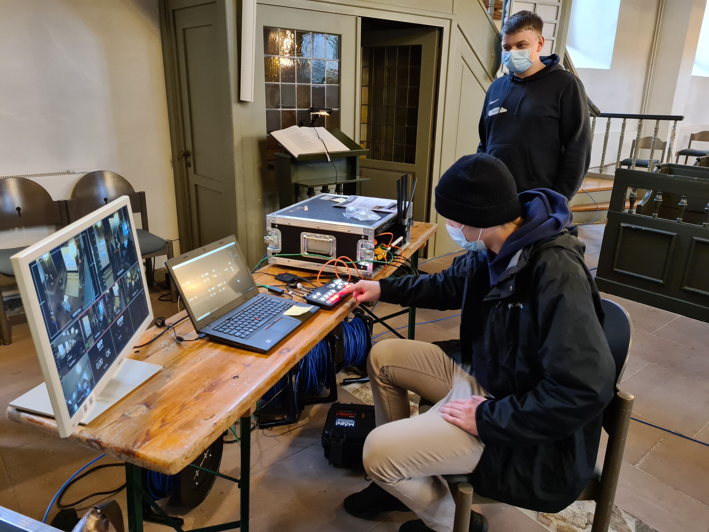 Am 23.08.2020, es war ein Freitagvormittag, da kam der Anruf, der alles ins Rollen bringen sollte. Eine Podiumsdiskussion mit Landesbischof und jungen Vertretern der Kirche steht an. Es soll der erste Livestream mit eigens angeschaffter Technik sein. Lange Wochen des Schriftverkehrs mit verschiedenen Angeboten und Ideen standen an. So sollte die Technik vielseitig einsetzbar sein und möglichst von vielen Personen genutzt werden können.