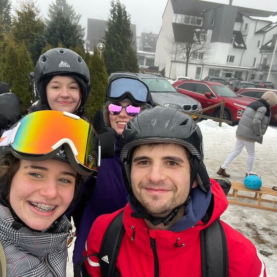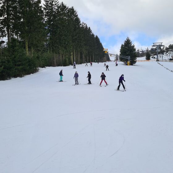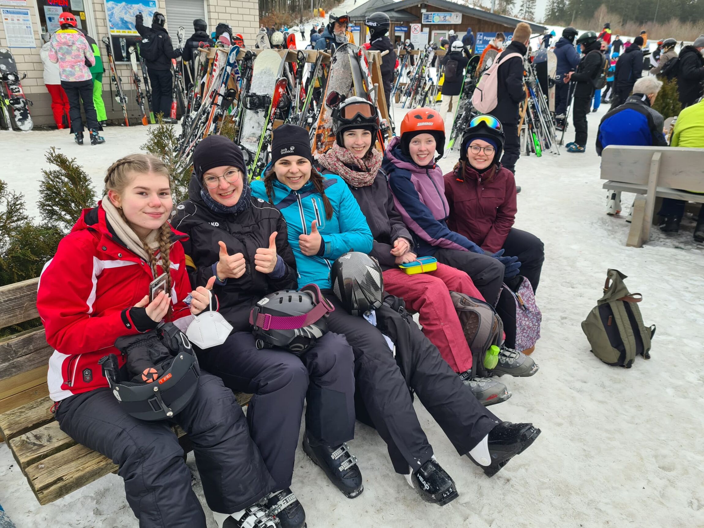 Es ist Freitag der 28. Januar um 16 Uhr. 21 Personen zwischen 15 und 25 Jahren waren aufgeregt. Darunter waren zehn Ski-Anfänger*innen, sieben Fortgeschrittene, zwei Skilehrer*innen und zwei Gruppenleitende. Zwei vollbesetzte Kleinbusse fahren los zum Winterberg nach Nordrhein-Westfalen. Das war der Beginn von fünf Tagen voller Spaß, Schnee, guter Laune und ohne Eltern. Wir fuhren 4,5 Stunden zu unserer Ankunft im Schullandheim Föckinghausen. Von hier aus pendelten wir täglich zum Winterberg. In den Kleinbussen war die Party schon am Start. Mit lauter Musik und Bässen kamen wir Freitagabend an und ein warmes und leckeres Abendessen stand für uns bereit.