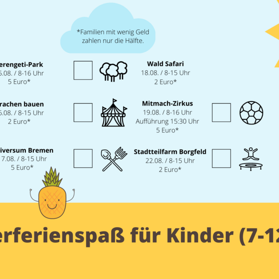 Wir freuen uns sehr, dass dieses Angebot auf so großes Interesse gestoßen ist. Mit einer so hohen Resonanz haben wir im Vorfeld nicht gerechnet und bedanken uns für das entgegengebrachte Vertrauen. Aufgrund der begrenzten Plätze konnten wir leider nicht allen Kindern zu jeder Aktion einen Platz anbieten. Wir hätten am liebsten alle dabeigehabt! Im Team werden wir für nächstes Jahr überlegen, wie eine Fortsetzung aussehen kann und freuen uns schon jetzt auf die nächsten spannenden Sommerferien.